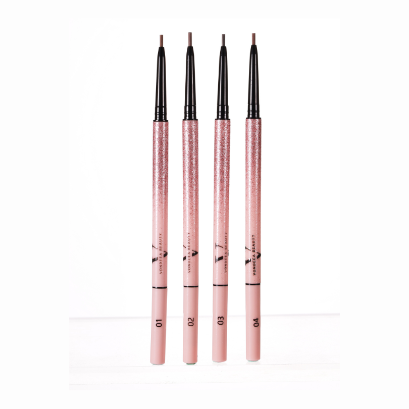 Desenează fire subțiri în direcția naturală a sprâncenelor, folosind vârful de 1.5 mm pentru precizie maximă. Completează și conturează forma dorită, adaptând presiunea pentru un efect natural sau mai intens. Estompează ușor cu peria de la celălalt capăt pentru un aspect uniform și bine definit. Pentru un rezultat de durată, aplică pe pielea curată, fără exces de sebum sau produse uleioase.