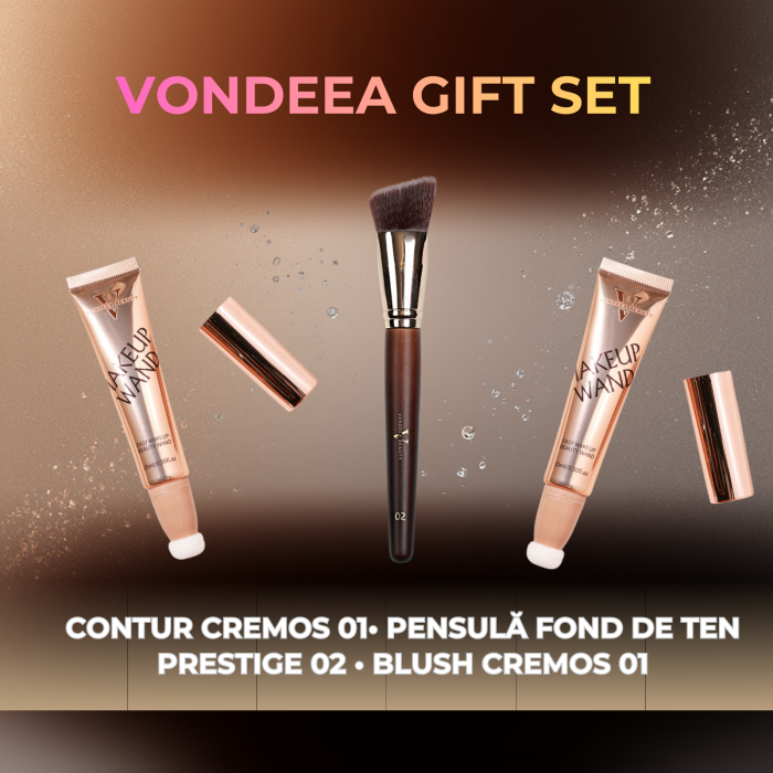 Transformă-ți machiajul cu Setul Luxury Vondeea 2, un trio elegant, gândit pentru a sculpta, evidenția și reîmprospăta trăsăturile feței. Setul include trei produse complementare, create pentru un rezultat natural și impecabil: